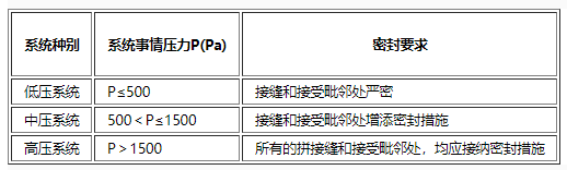 髙壓體系風(fēng)道QH≤0.0117P^0.65